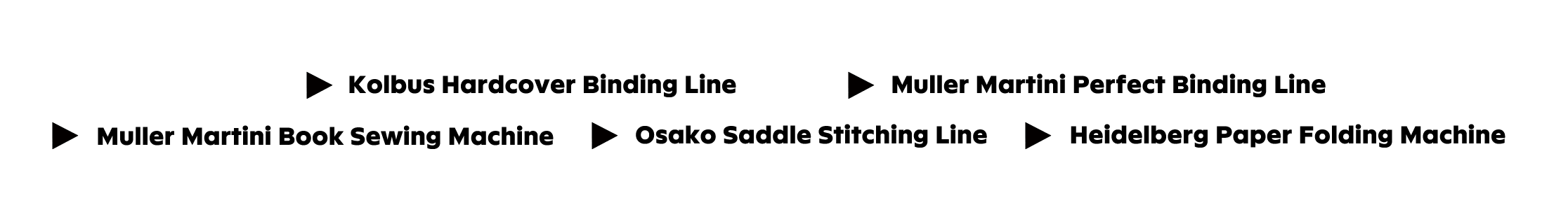 Equipment in House. Heidelberg Speedmaster Offset Presses Binding & Handwork Post-press finishing Quality Control Next Step Explore and see how amazing our products could be. go